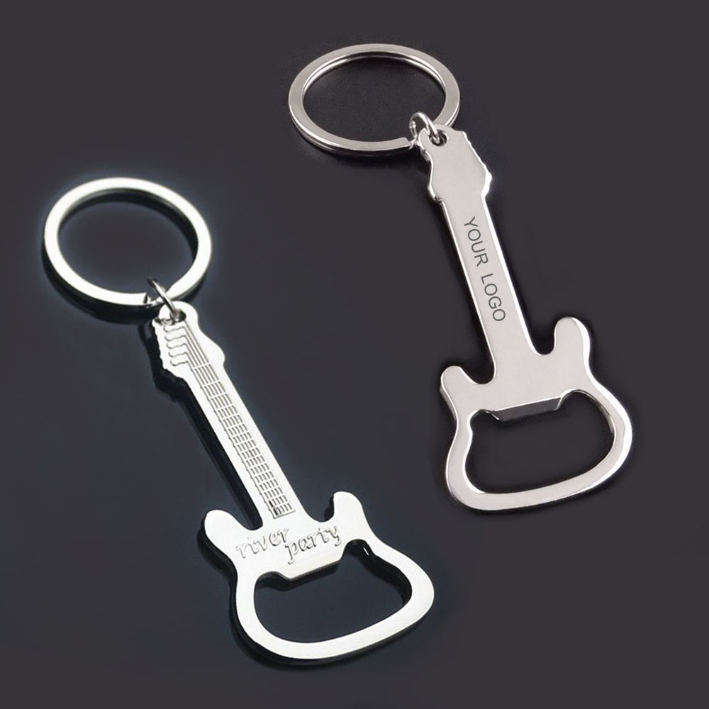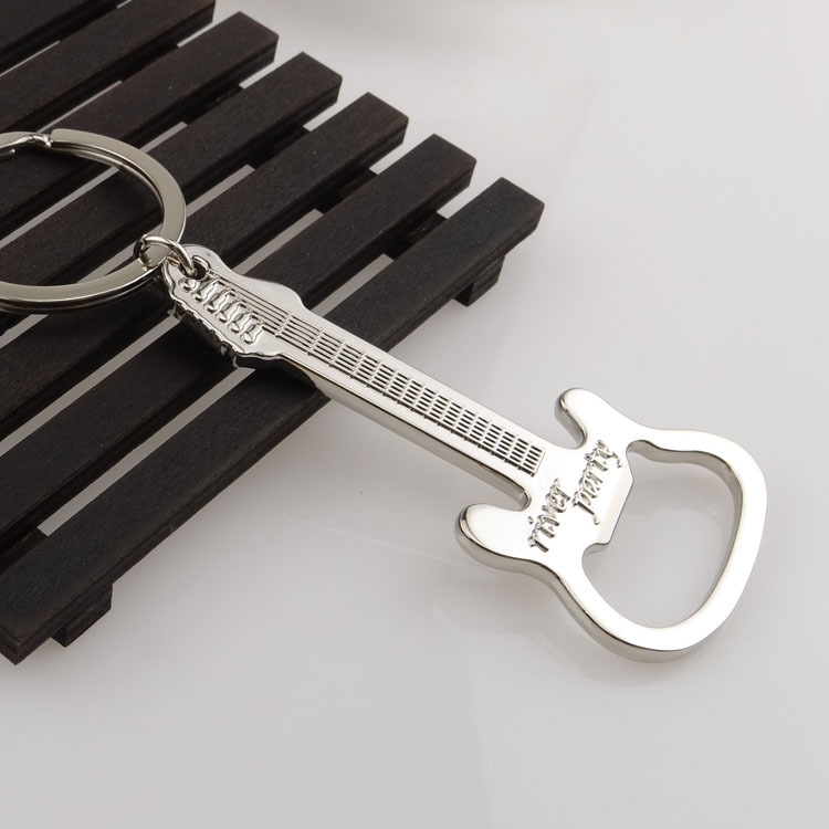 Guitar beer bottle opener key chain music key chain,Very new,and it is made of metal,High grade multifunctional bottle opener, key buckle, waist hanger, automobile key buckle,It looks like a guitar, suitable for music lovers, very beautiful, can be taken away at any time, in the opening of the bottle, this can also play a great role.Suitable for advertising occasions.This key chain is commonly used by men and women. This product can be customized logo.