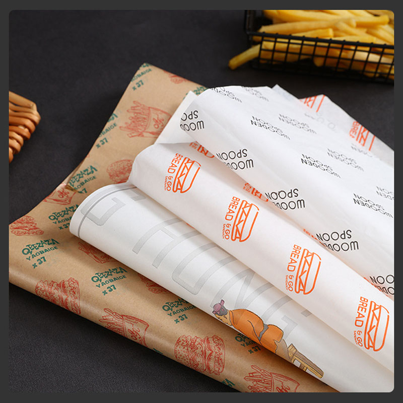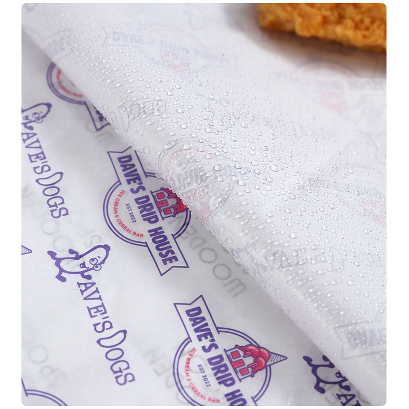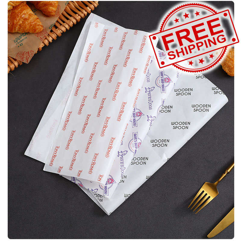 Custom Printed Wrapping Tissue Paper. Made of 45gsm food grade laminating paper, the main feature is that the composite material can be oil-proof, waterproof, and heat-sealable. This wrapper has the extra properties of resistant to oil, grease, water and moisture. It’s suitable for Burger shop and Outdoor barbecue. 100% guarantee for quality. Orders of 50,000 pieces or greater are eligible for sea shipping. Welcome to consult and customize by mail anytime!