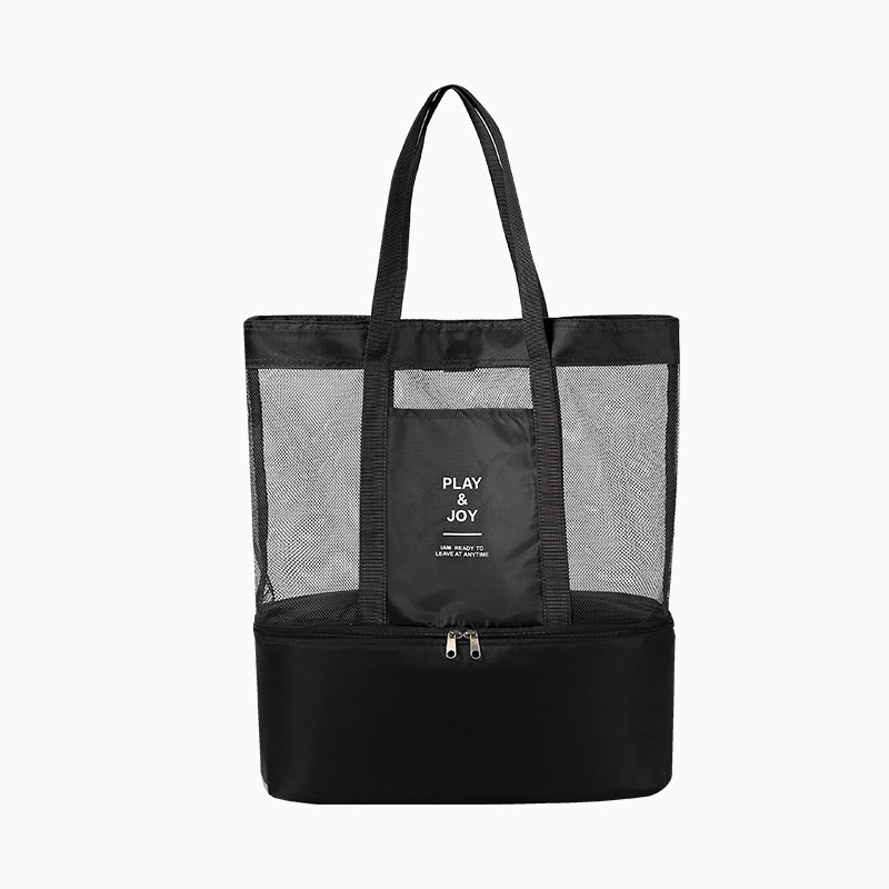 Stay cool and organized with our PEVA-insulated cooler bag and spacious mesh tote. Keep drinks and food fresh for up to 18 hours, accommodating 12 cans or other snacks. The 17x15x6 inch mesh tote is perfect for towels, water bottles, toys, and more. Anti-sticky PVC mesh ensures items stay dry and odor-free, with an additional pocket for sunglasses and small essentials. Enjoy freshness anytime, anywhere.
